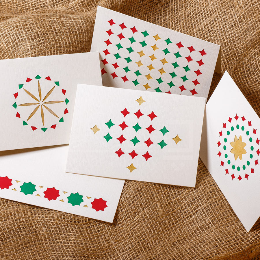Cut in paper, painted with premium poster colors. Greeting cards come in a standard size of 5 x 7 inches.
